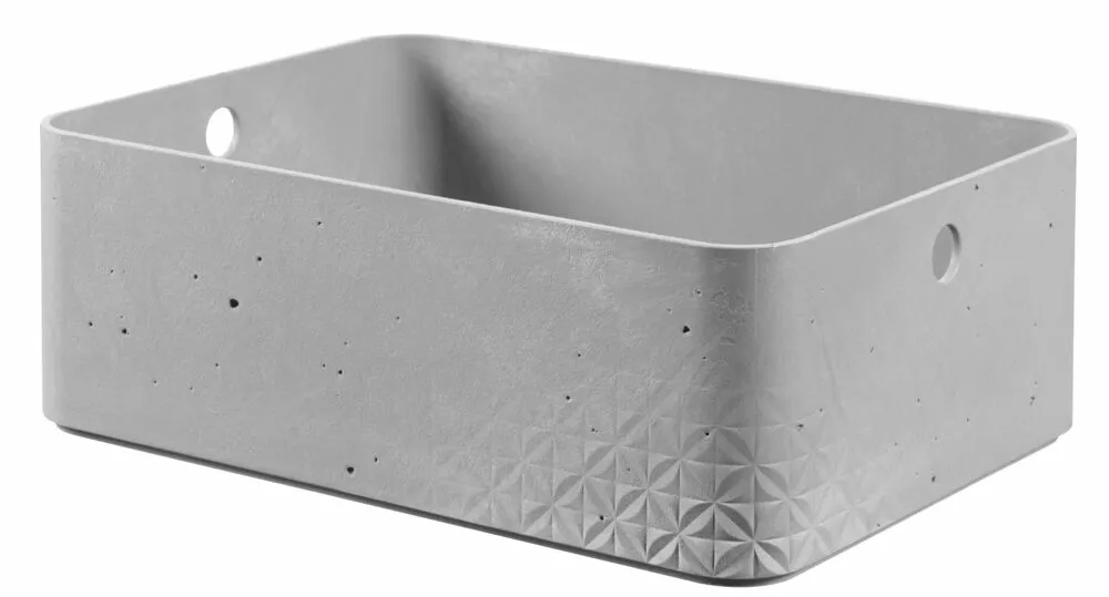 Curver oppbevaringsboks er i betonggrå plast og boksen har en betong look. Boksen har håndtak og er stabil. Kan brukes til oppbevaring av mye forskjellig. Ypperlig på kjøkkenet, badet, kontoret, i gangen og mange andre steder. Finnes i flere ulike størrelser, fra 3-18 liter. Mål 17x17x13, 17x25x13, 25x34x13, 28x28x13, 28x28x27 cm.