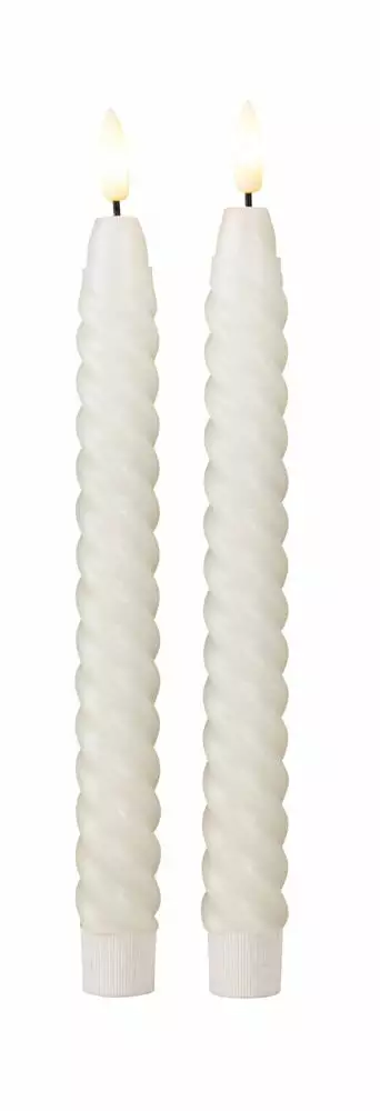 LED tvinnet kronelys i voks 2 pk. Farge hvit eller sand. Høyde 25 cm