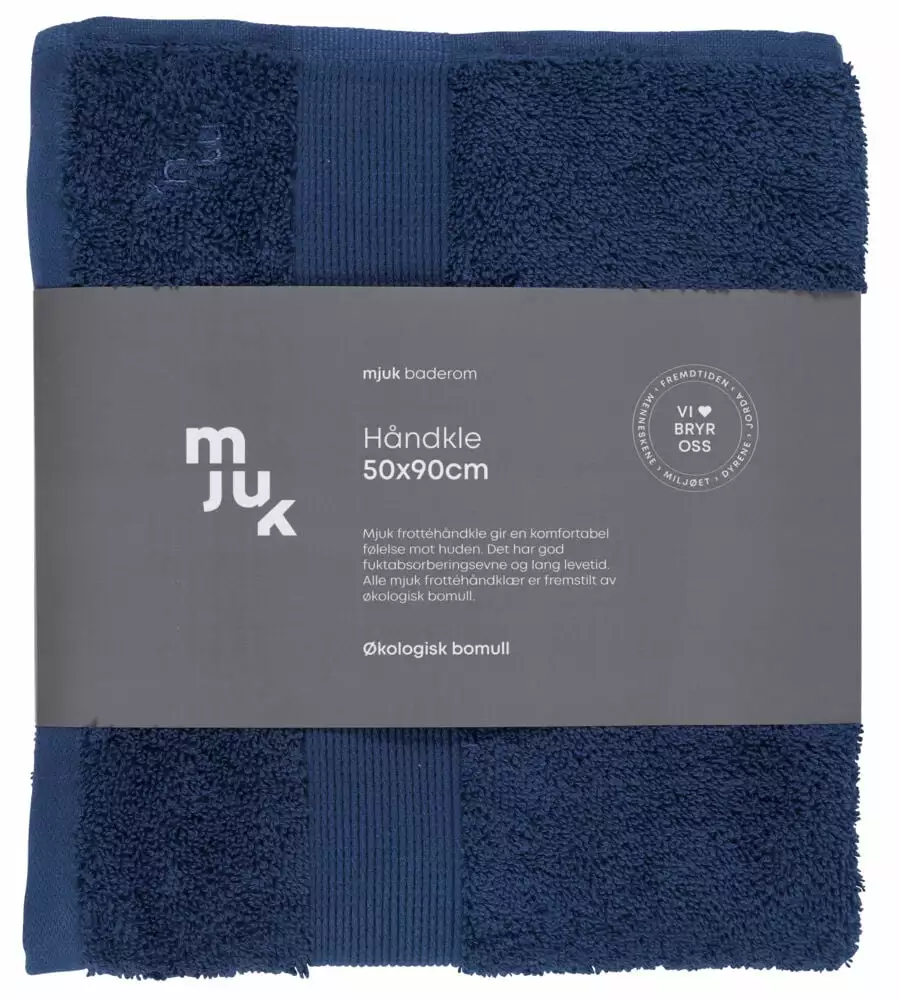 Mjuk økologiske frotté-håndkleserie er produsert i 100 % kjemmet økologisk bomull. Et fyldig kvalitetshåndkle, 500 g/m², som tørker meget godt og er slitesterkt. Tåler vask på 60 grader og kan tørketromles. Kommer i størrelsene 50×90 cm eller 70×140 cm.