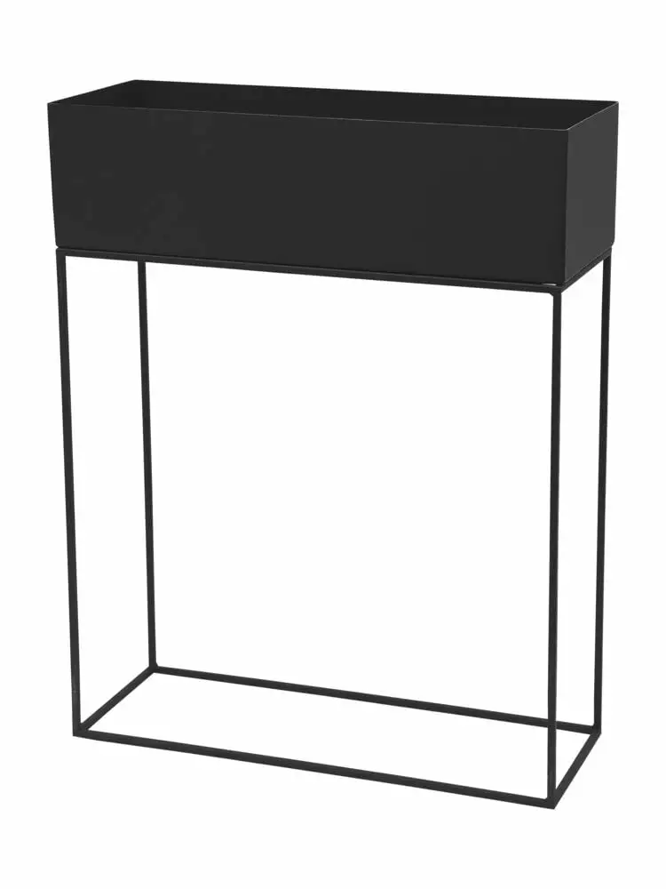 Elegant blomsterkasse i pulverlakkert metall for innebruk. Totalhøyde på 70 cm. Høyde plantekasse: 15 cm.