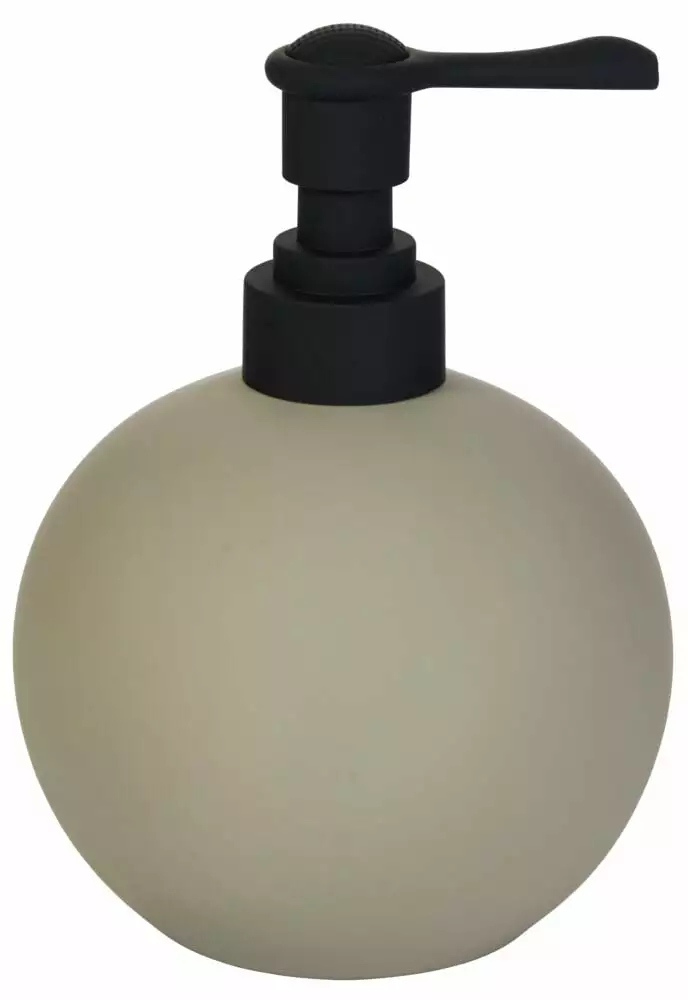 Såpedispenser i porselen med matt gummilakkering og plast med forkrommet lakkering.