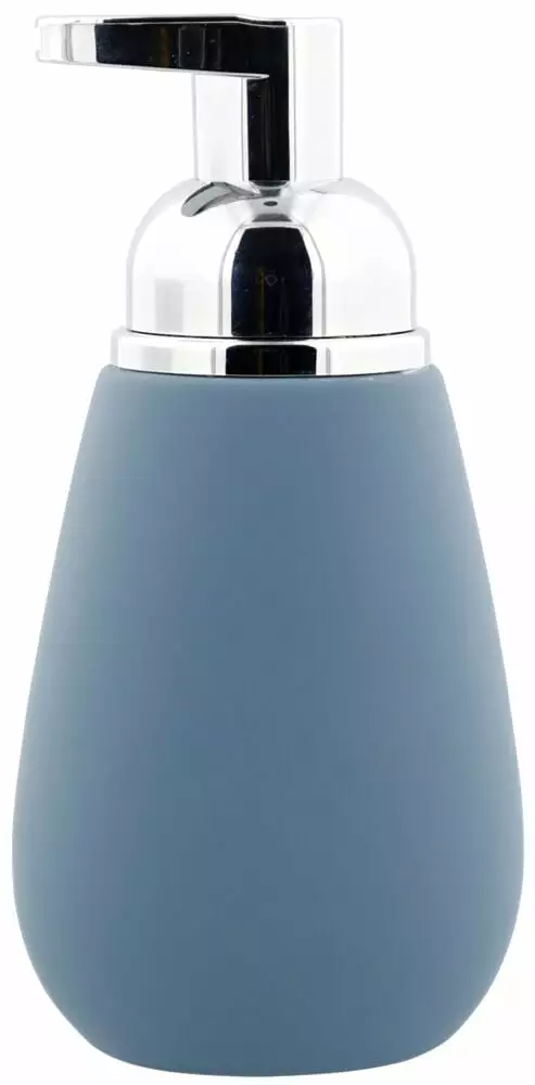 Såpeskumdispenser i porselen med matt gummilakkering og plast med forkrommet lakkering.