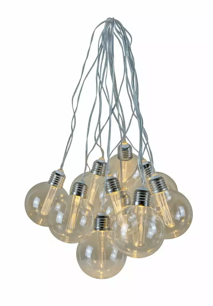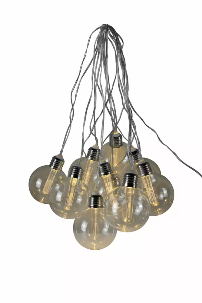 Skap stemning med 10 runde LED lyspærer med morsom lyseffekt. Varmhvitt LED lys i hver pære. Størrelse: 4,5m, ledekabel 3m. Ip44 for inne og utendørs bruk