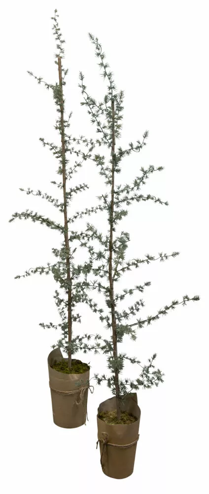 Selja kunstig sedertre i papirpotte. Finnes i ulike størrelser.