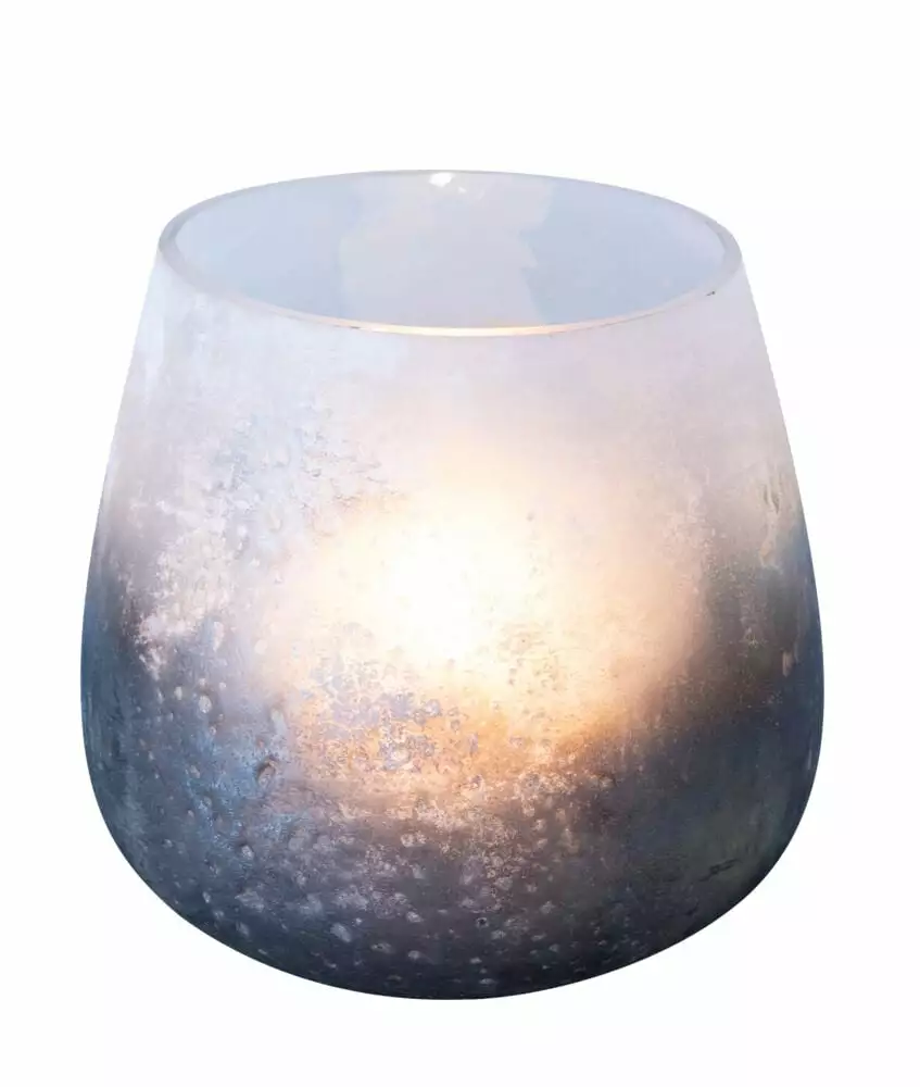 Ingen av lysglassene er helt like. Finnes i to størrelser: Ø:15 cm/H:15 cm eller Ø:11cm/H:11 cm. Grå/beige