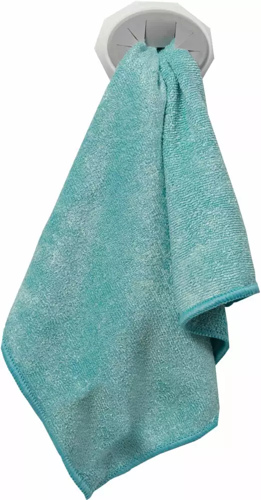 Klutholder til å henge opp oppvaskkluter, microfiberkluter eller kjøkkenhåndkle. Trykk fast kluten i holderen så har du den alltid tilgjengelig. Festes med dobbelsidig teip, eller skrus fast. Kan festes på kjøkkenet eller badet.