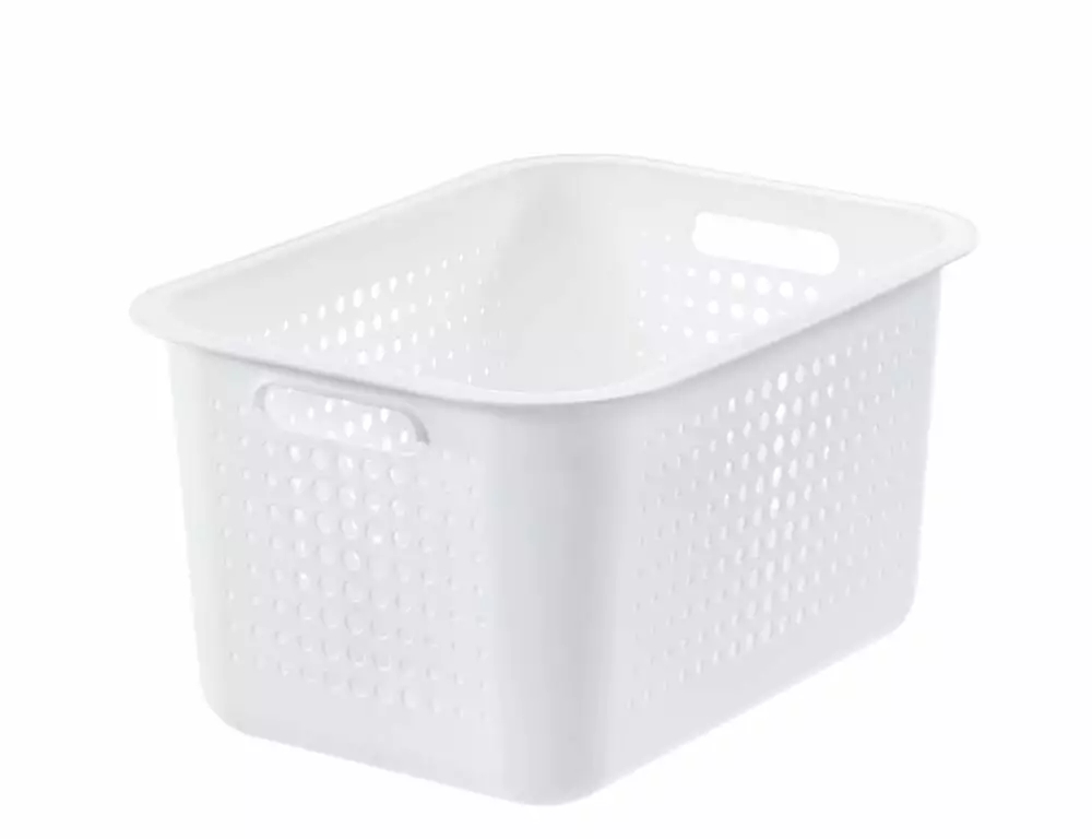 SmartStore™ Basket Recycled 20 oppbevaringskurv er produsert av 100% resirkulert plast, og finnes i fargene hvit og taupe. Kurven er slitesterk og har et pent design som gjør at den passer inn i alle husets rom. Passer fint til oppbevaring av håndklær eller baderomsartikler. Kurvene kan settes i hverandre og de kan stables ved hjelp av lokk – kjøpes separat. Tåler temperaturer ned til -40 grader og opp til +100 grader. Mål (LxBxH): 37x28x20 cm. Volum 13 liter. 10 års garanti.