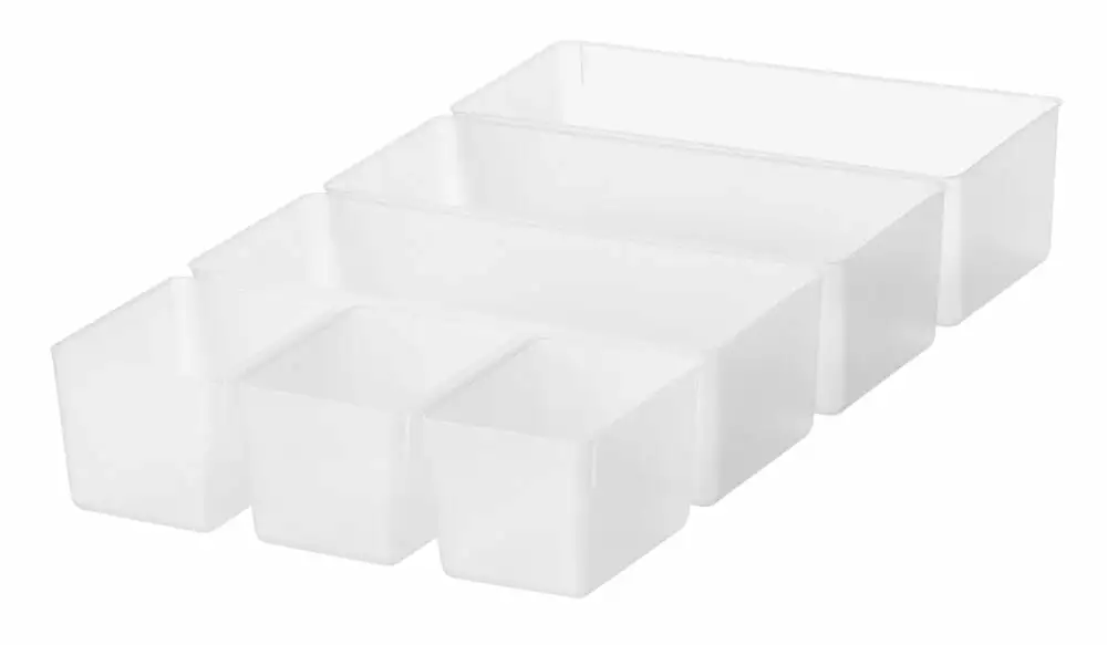 3 små og 3 mellomstore innsatser perfekte for å dele opp og organisere småting. Innsatsene passer perfekt til oppbevaringsboksene SmartStore Classic 14, 15 og Colour 14, 15.
